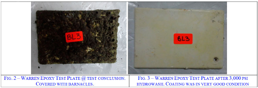 - As noted in figures 2 and 3 below, our steel plate coated with the Warren Epoxy easily survived the 3 months of barnacle fouling resistance testing.